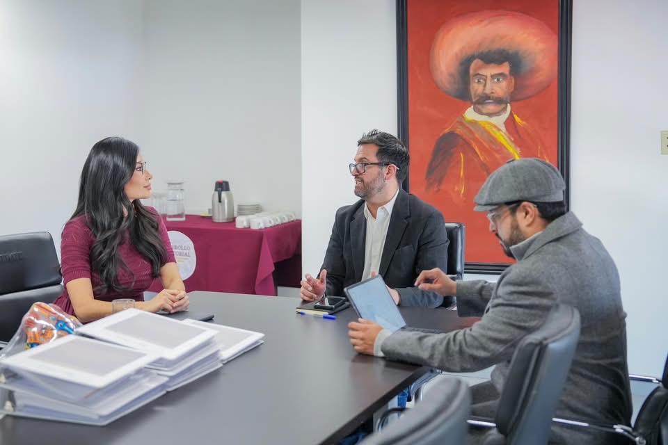 Tepic, Nayarit.– La presidenta municipal de Tepic, Geraldine Ponce, sostuvo una reunión de trabajo con José Iracheta, subsecretario de Ordenamiento Territorial, Urbano y Vivienda, y con Alonso Cacho Silva, jefe de la Oficina de la SEDATU, con el objetivo de gestionar nuevos proyectos que se traduzcan en bienestar real para las familias tepiqueñas.