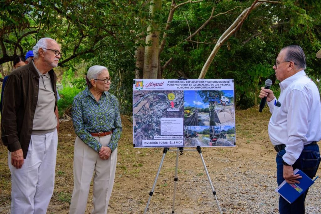Con el objetivo de fortalecer el acceso al agua potable y mejorar la calidad de vida de las familias de la región, el gobernador del estado, Miguel Ángel Navarro Quintero, acompañado de su esposa, la presidenta del Sistema DIF Nayarit, doctora Beatriz Estrada Martínez, realizó una supervisión de los trabajos de perforación exploratoria y construcción de un pozo profundo en la localidad de Las Piedras, municipio de Compostela.