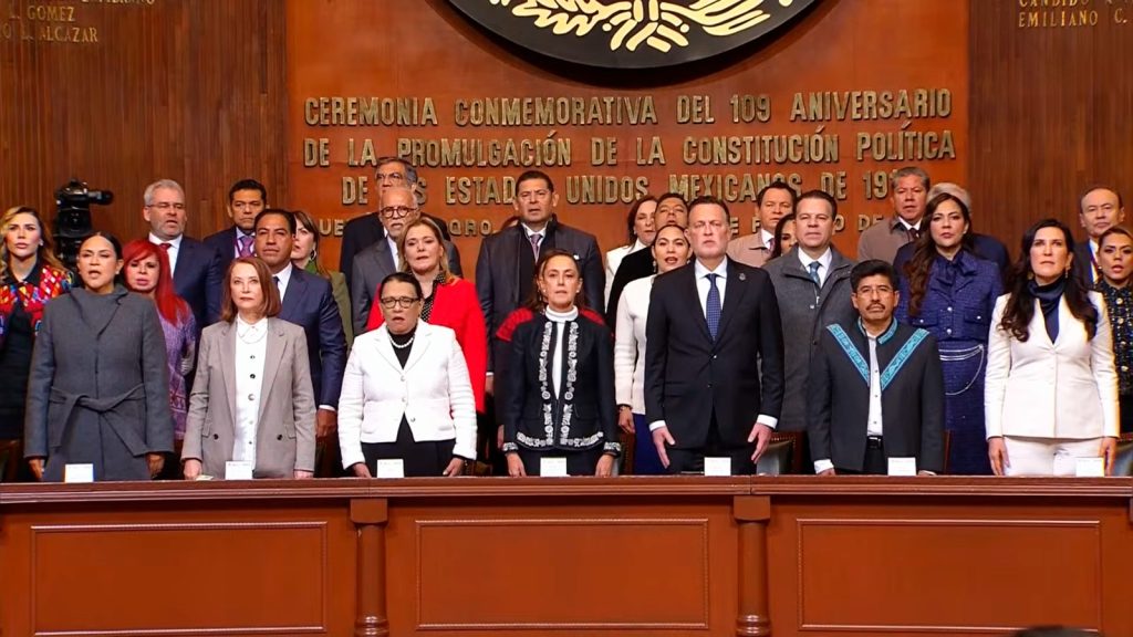 Querétaro, Qro.– El gobernador del estado de Nayarit, Miguel Ángel Navarro Quintero, asistió a la Ceremonia Conmemorativa por el 109 Aniversario de la Promulgación de la Constitución Política de 1917, encabezada por la presidenta de México, Claudia Sheinbaum Pardo, en el Teatro de la República, en Querétaro.