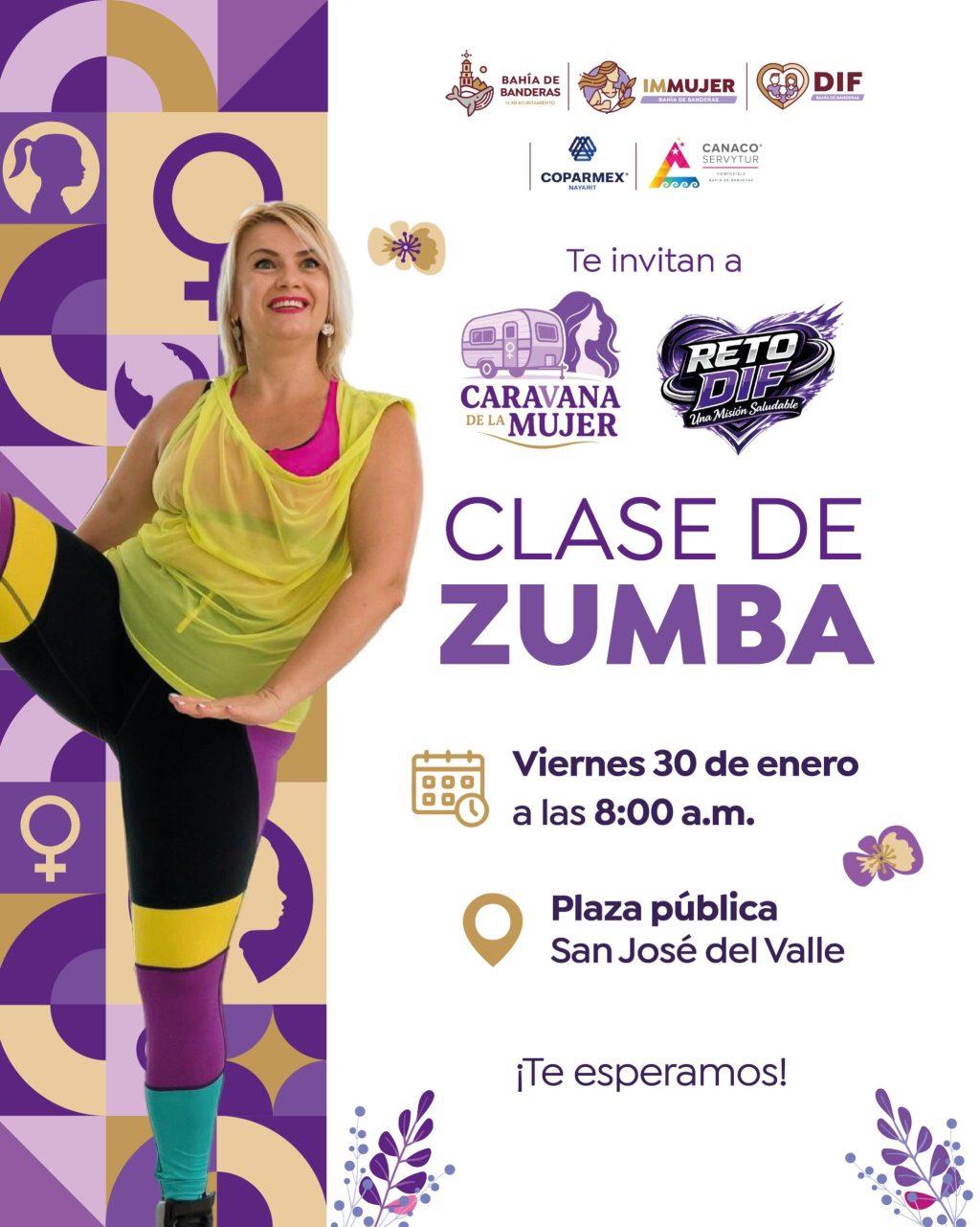Previo al inicio de la Caravana de la Mujer se llevará a cabo un Clase de Zumba en punto de las 8:00 a.m, la invitación es abierta para todas las mujeres del municipio, las esperamos.