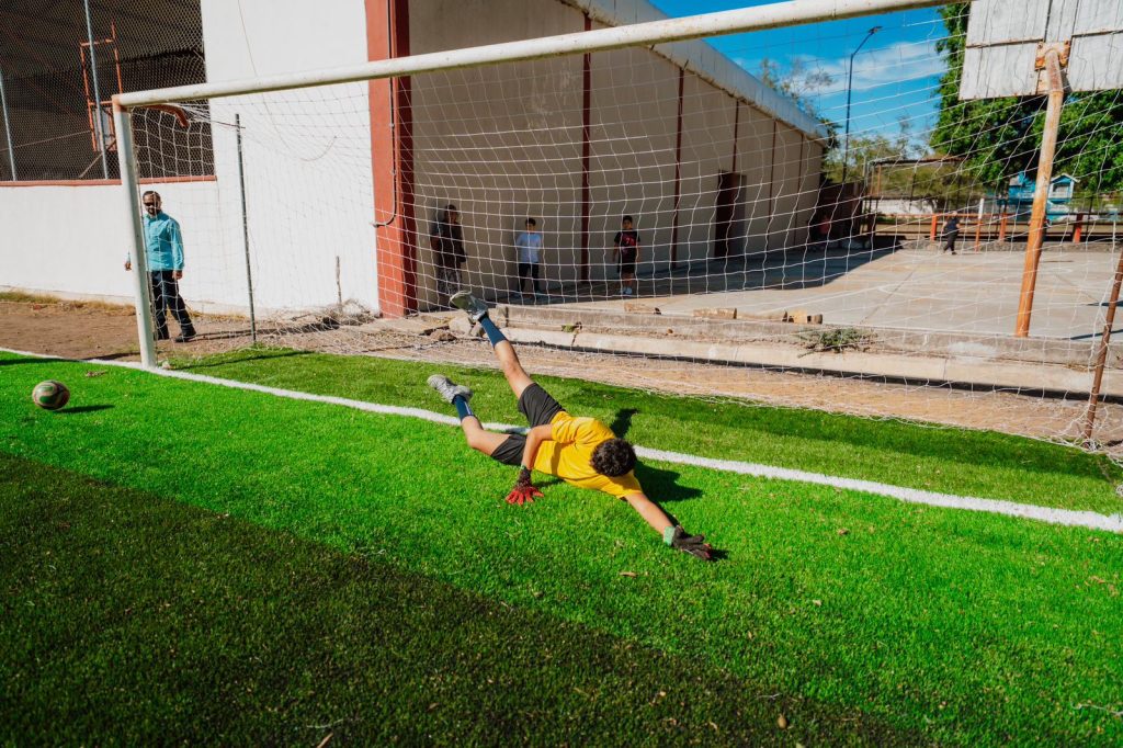Con una inversión superior a los 4 millones de pesos, provenientes de recursos federales a través de la Secretaría de Desarrollo Agrario, Territorial y Urbano (SEDATU), se realizaron trabajos de rehabilitación que incluyeron la instalación de pasto sintético, luminarias solares y balizamiento de las canchas de básquetbol y voleibol, mejorando de manera integral sus condiciones.