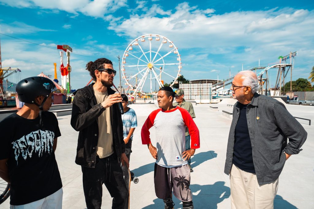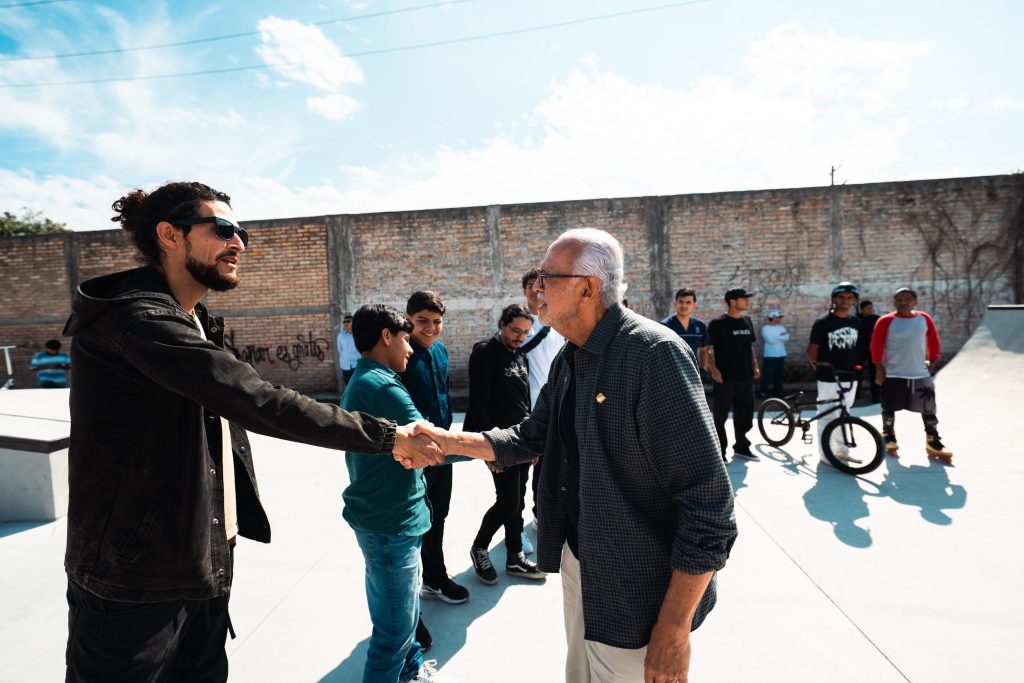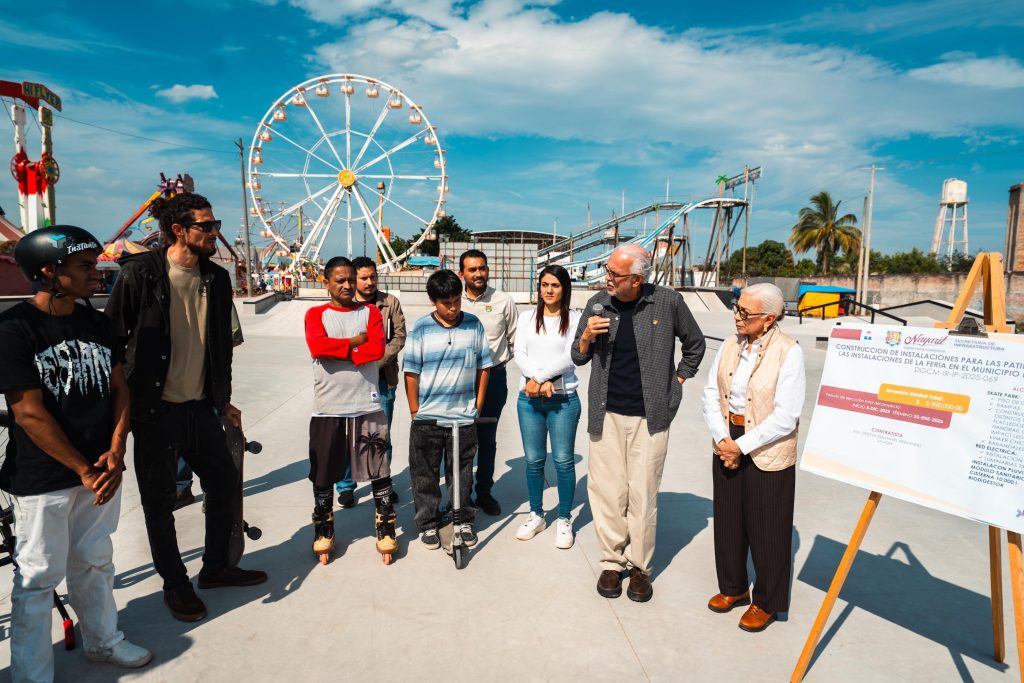 El gobernador Miguel Ángel Navarro Quintero, acompañado por su esposa, la doctora Beatriz Estrada Martínez, presidenta del Sistema DIF Nayarit, realizó un recorrido por el área destinada al skateboarding en el Recinto Ferial de Tepic. Dicho proyecto, diseñado con la participación activa de jóvenes nayaritas, se encuentra en su etapa final y será concluido en los próximos días con la instalación de luminarias y la culminación de servicios sanitarios.