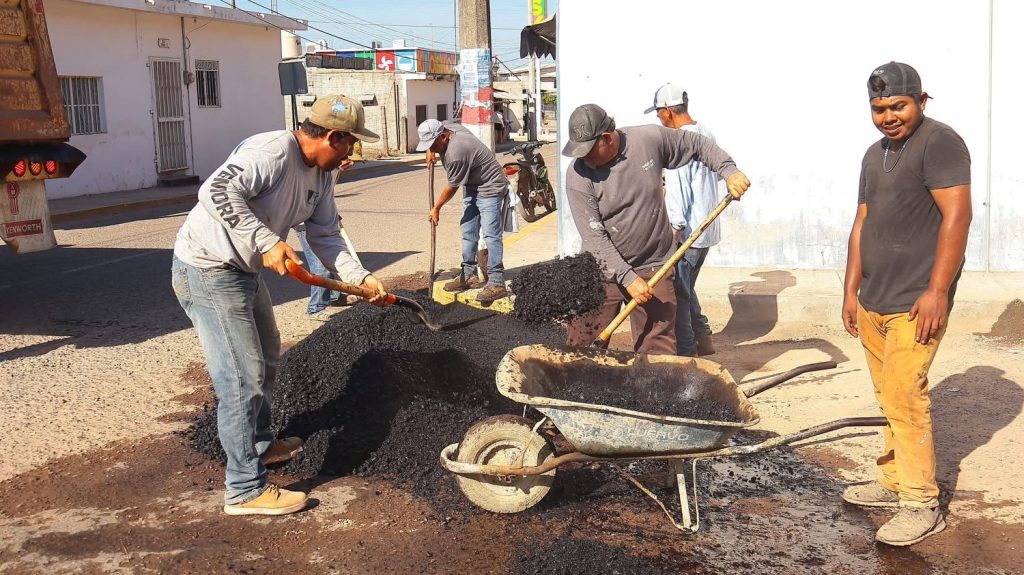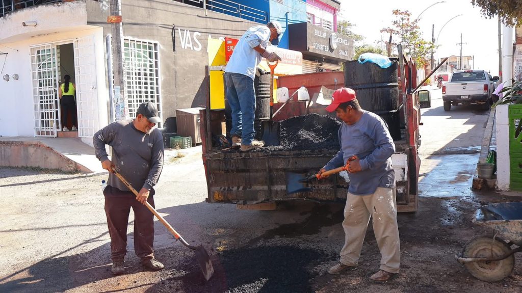 Rosamorada, Nayarit.– El Gobierno Municipal de Rosamorada, encabezado por el presidente municipal Ampelio Gutiérrez García, mantiene en marcha el programa permanente de bacheo en la cabecera municipal, con el objetivo de mejorar las condiciones de movilidad y seguridad vial.