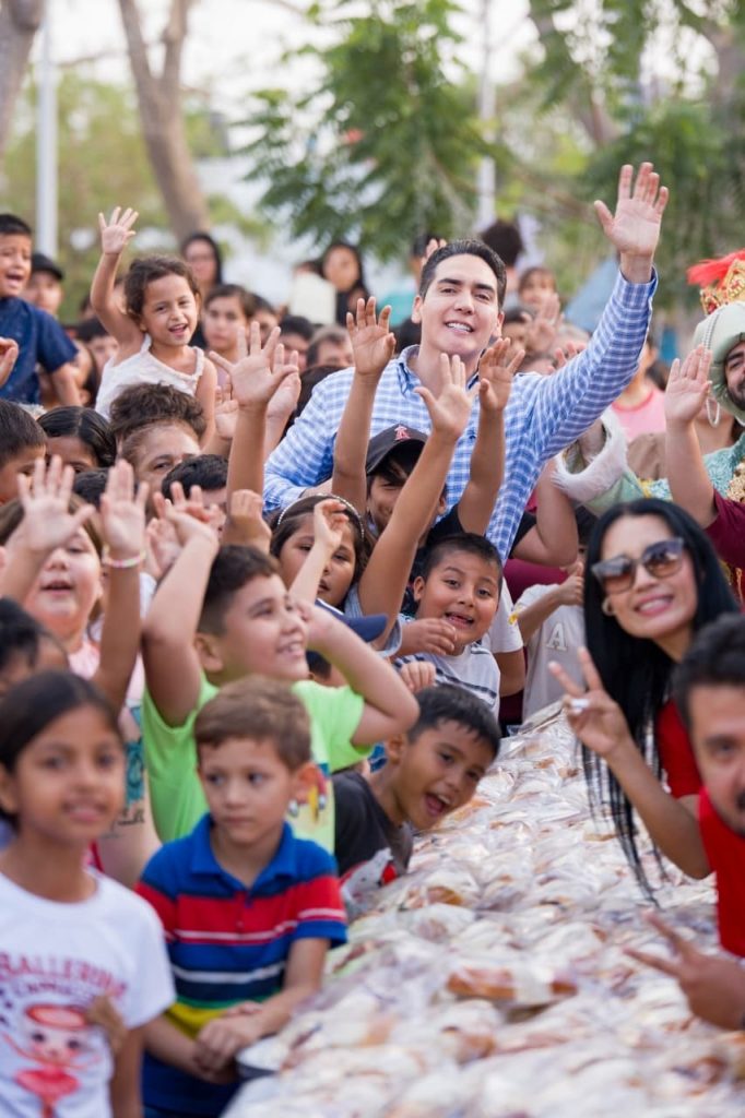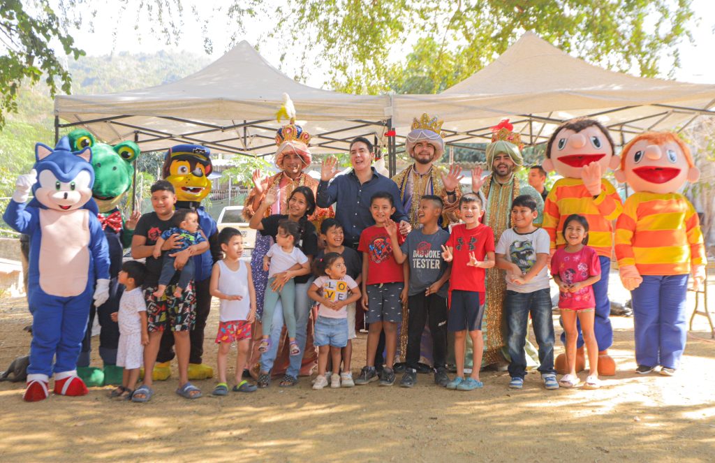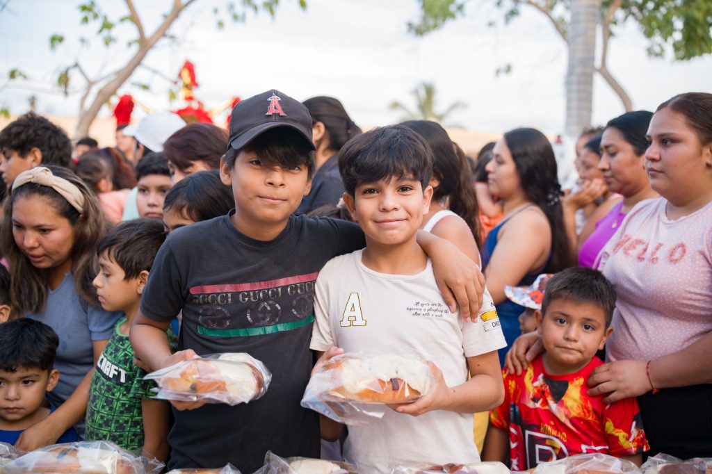 Héctor Santana convivió de manera directa con las familias, en especial, con las niñas y los niños, a quienes les entregó personalmente su pedazo de rosca, chocolate y obsequios.