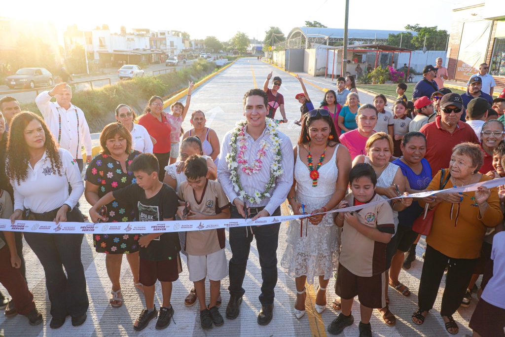 Durante su mensaje, el alcalde Héctor Santana destacó que esta vialidad, antes de terracería y afectada durante las lluvias, hoy se convierte en una de las avenidas más modernas y funcionales de la comunidad.