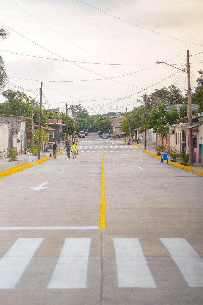 Se informó que la intervención de esta calle incluyó 2,699 metros cuadrados de pavimento hidráulico, 459 metros de guarniciones, 669 metros de banquetas, 717 metros de red de agua potable, 686 metros de red sanitaria, además de 55 tomas domiciliarias y 246 metros lineales de red subterránea. La inversión total fue de 10 millones 750 mil pesos, ejecutados en un periodo de seis meses.