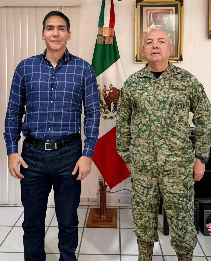 Bahía de Banderas, Nayarit.– El presidente municipal de Bahía de Banderas, Héctor Santana García, informó que sostuvo una reunión de trabajo con el General de Brigada de Estado Mayor Horacio Flores Fonseca, comandante de la 41/a Zona Militar, con el objetivo de fortalecer las estrategias de seguridad en el municipio.