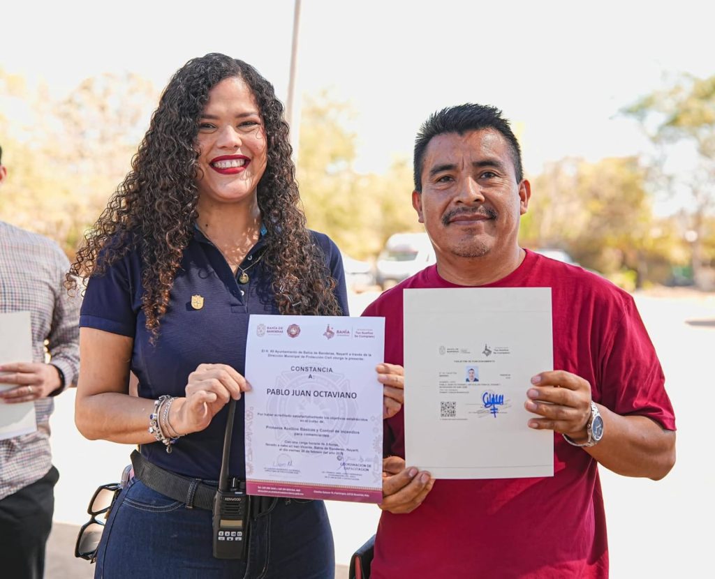 El Gobierno Municipal de Bahía de Banderas encabezado por Héctor Santana realizó la entrega de tarjetones y constancias de capacitación en primeros auxilios y control de incendios a comerciantes del Tianguis de la Riviera, esto como parte de las acciones de respaldo y ordenamiento al comercio local.