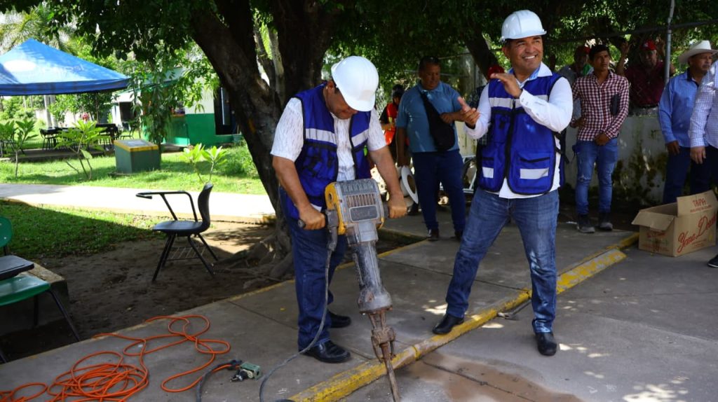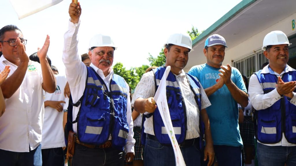 San Vicente, Rosamorada, Nayarit.– presidente municipal Ampelio Gutiérrez dio el banderazo de arranque para la construcción de una techumbre en el CBTA No. 242, una obra largamente esperada por la comunidad estudiantil.
