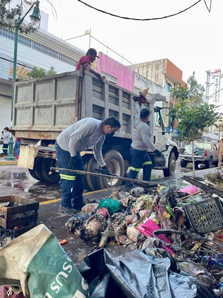 Desde tempranas horas de este miércoles, cuadrillas municipales se desplegaron en el lugar para retirar escombros, limpiar pasillos y asegurar las zonas afectadas, con el propósito de acelerar la recuperación del espacio y permitir que las y los locatarios puedan retomar sus actividades lo antes posible.
