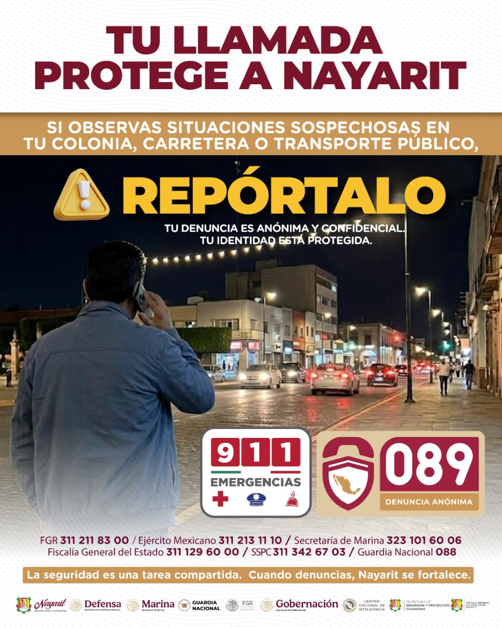Navarro Quintero indicó que la denuncia es anónima, confidencial y sin costo, e hizo un llamado a utilizar los canales oficiales como el 089 para reportes anónimos y el 911 en caso de emergencia, con la garantía de que la identidad de quien realiza el reporte está plenamente protegida.