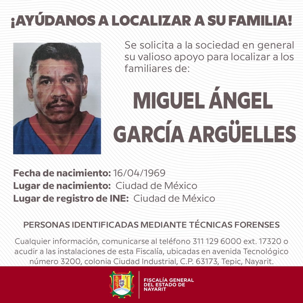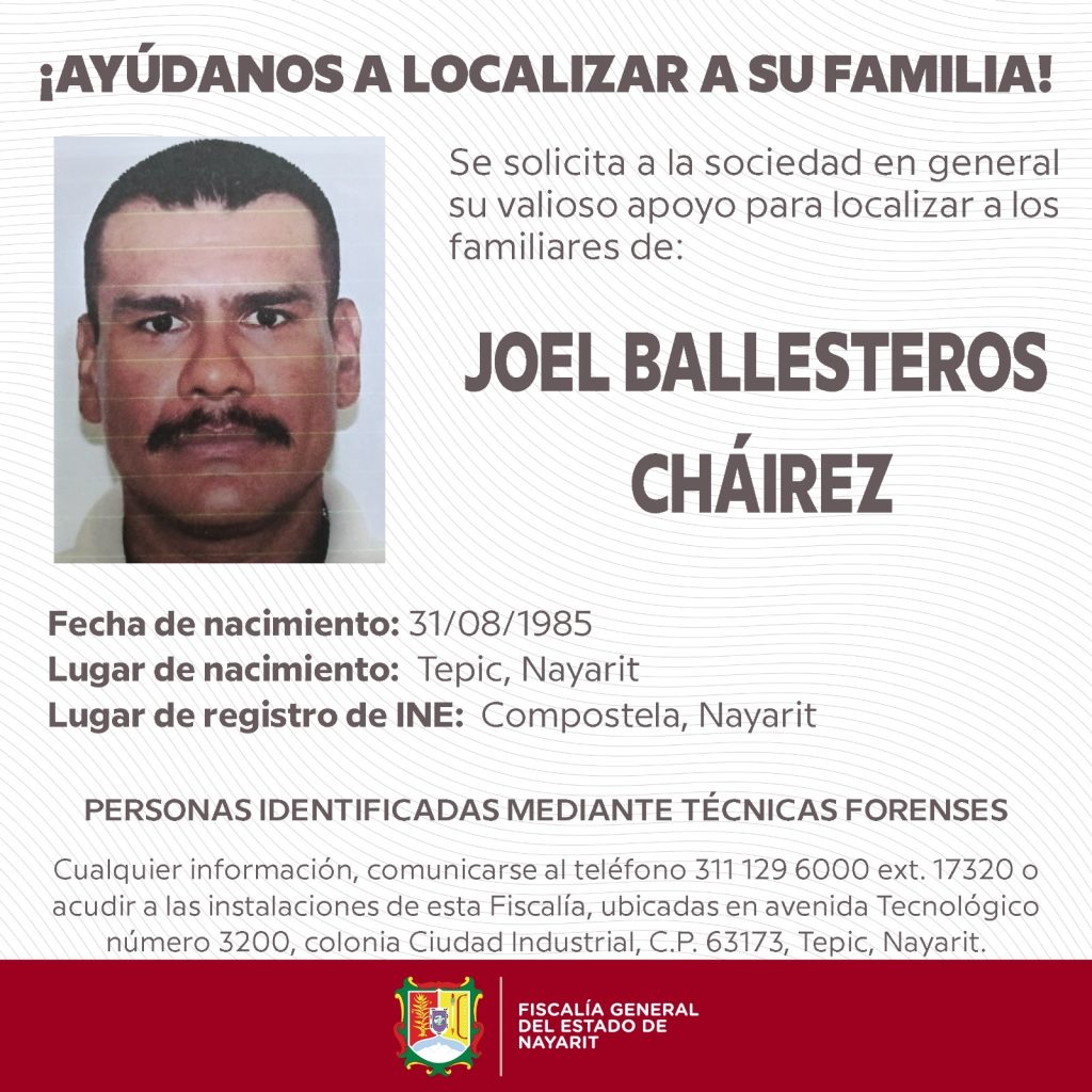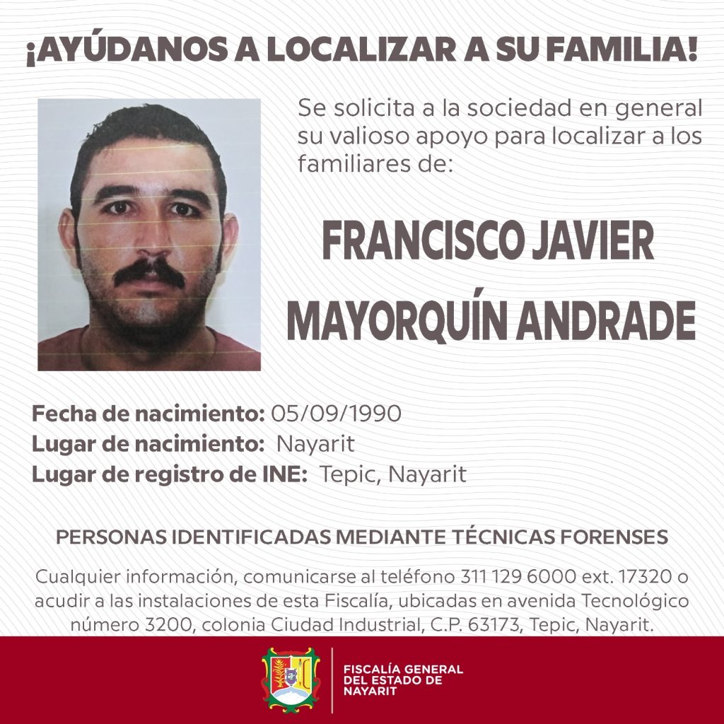 La Fiscalía General del Estado de Nayarit solicita la colaboración de la ciudadanía para identificar a estas personas, cuyos restos se encuentran resguardados con dignidad en la fosa común del Servicio Médico Forense, en Av. Tecnológico No. 3200 Oriente, colonia Ciudad Industrial, Tepic.