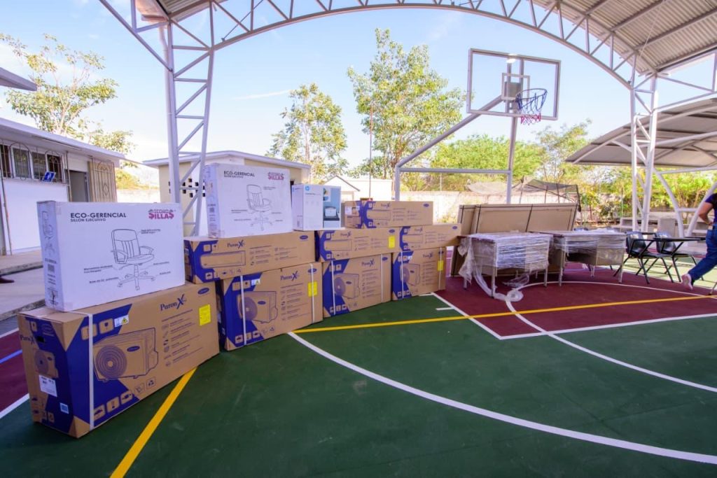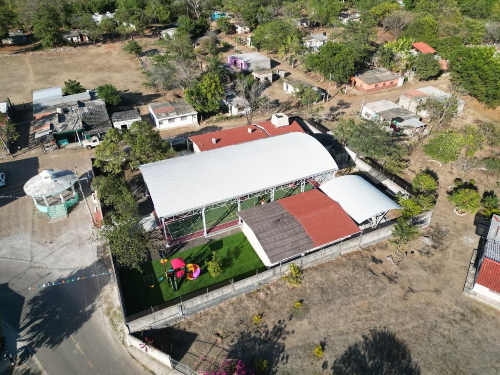 Entre las obras realizadas se encuentran la construcción de un domo, cancha de usos múltiples, área de juegos infantiles, desayunador escolar y sistema de drenaje, además de la entrega de aires acondicionados, sillas y escritorios, acciones que fortalecerán la seguridad y el bienestar de las y los estudiantes.