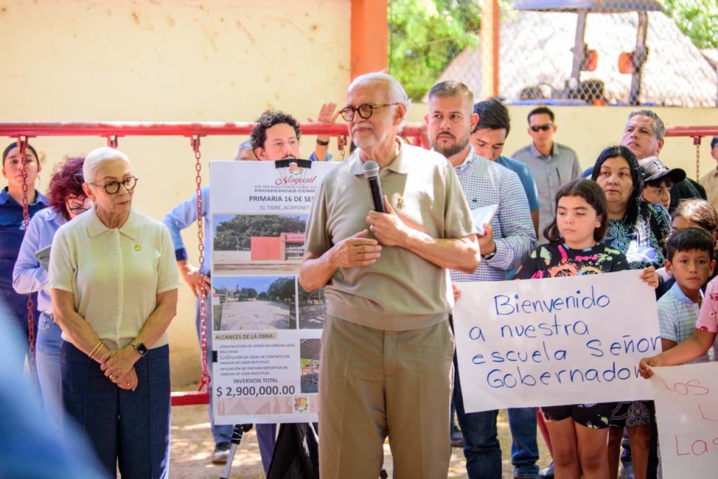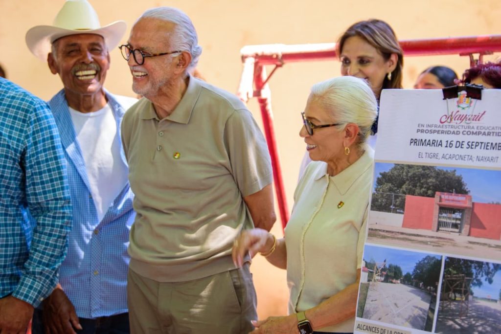 El gobernador del estado, Miguel Ángel Navarro Quintero, y su esposa, la presidenta del Sistema DIF Nayarit, doctora Beatriz Estrada Martínez, iniciaron obras de infraestructura educativa en la primaria “16 de Septiembre”, en la comunidad de El Tigre, municipio de Acaponeta.