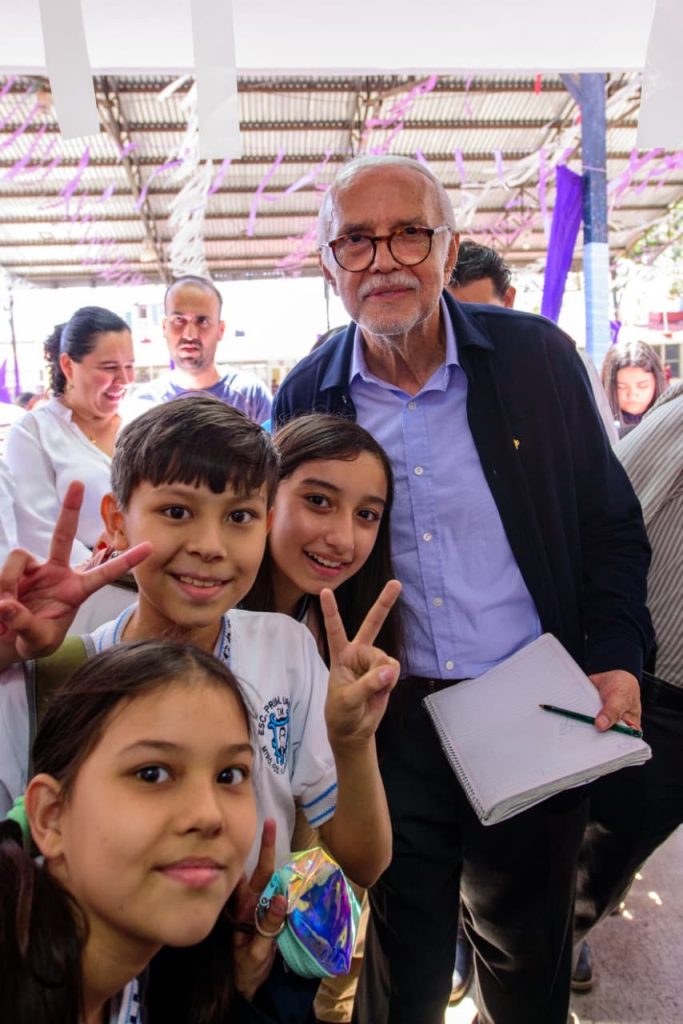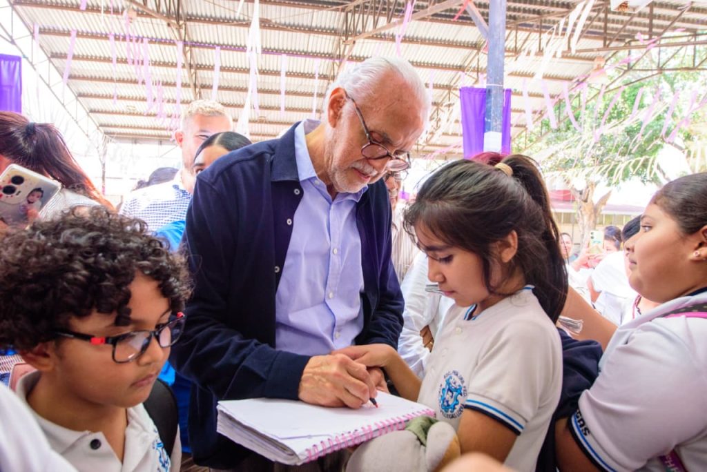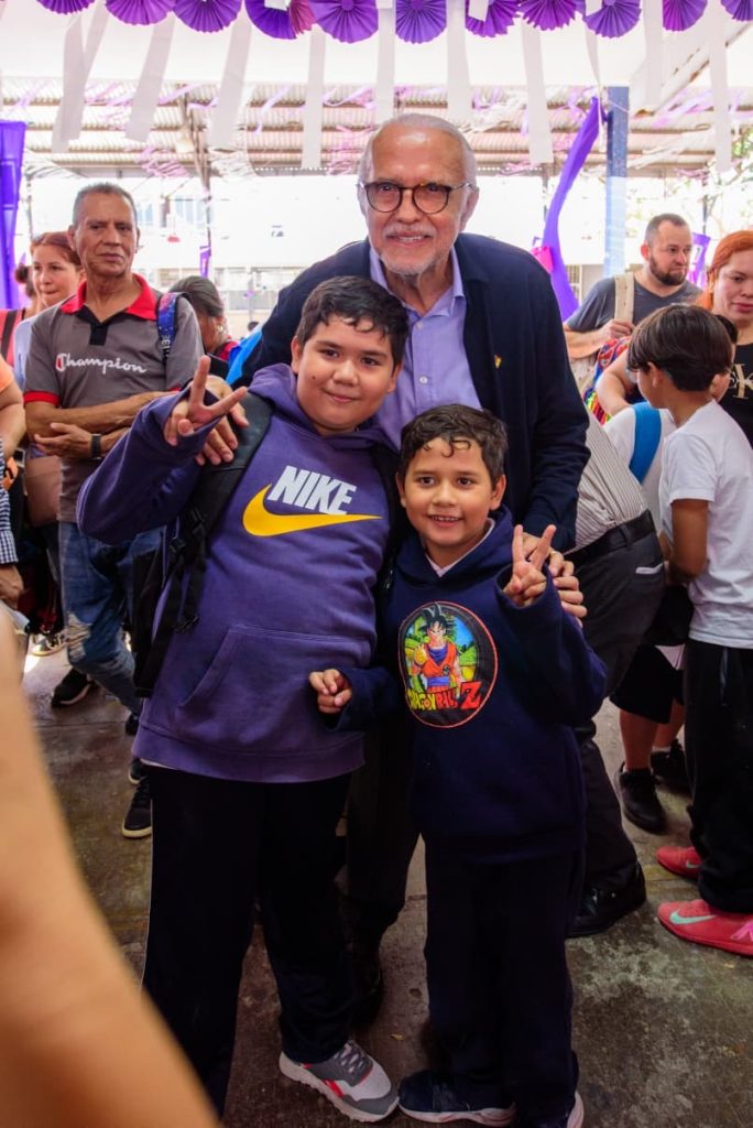 Durante el recorrido supervisó las obras realizadas, entre ellas la impermeabilización de techos, la rehabilitación del área de desayunadores, la entrega de mobiliario nuevo y pintarrones, así como la instalación de aires acondicionados, con el propósito de mejorar los espacios donde estudian las niñas y los niños.