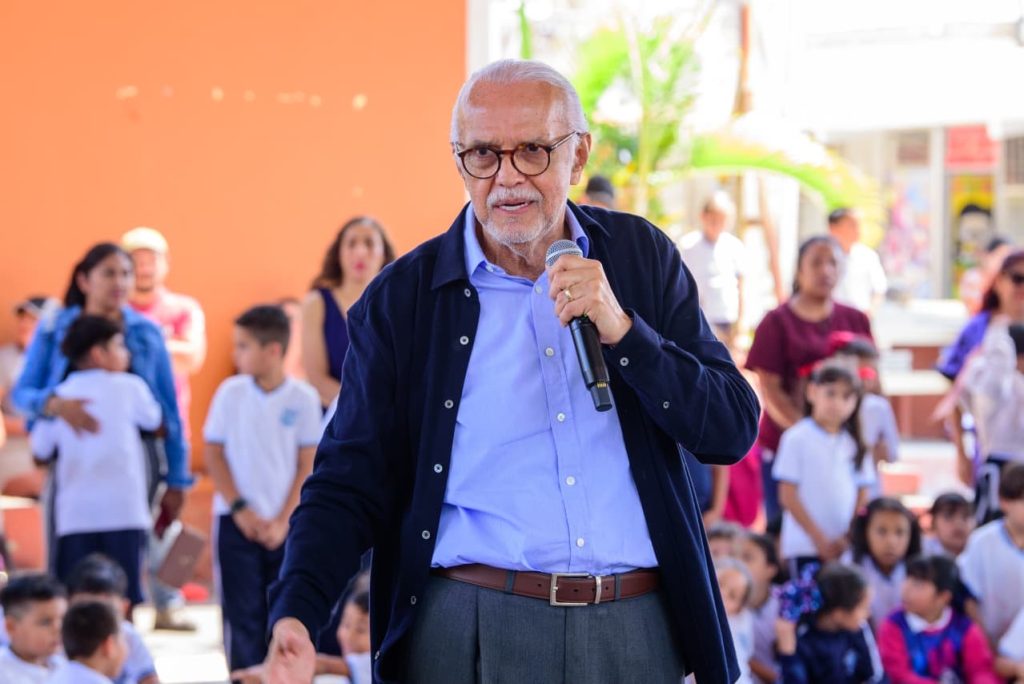 El gobernador del estado, Miguel Ángel Navarro Quintero, convivió con alumnas y alumnos, así como con maestras y maestros de la escuela primaria Francisco Villegas Loera, en la colonia Lomas de la Cruz, en Tepic, donde escuchó a la comunidad escolar y dialogó sobre las necesidades del plantel para continuar fortaleciendo las condiciones de aprendizaje.