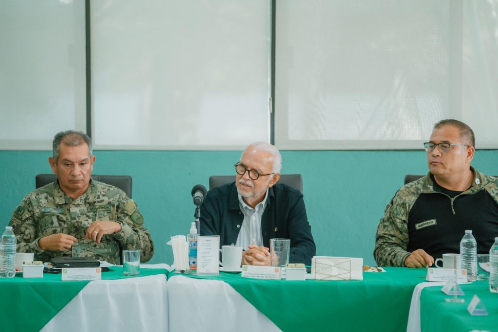 Durante la sesión de este lunes de la Mesa Estatal de Construcción de Paz y Seguridad, el gobernador del estado, Miguel Ángel Navarro Quintero, reforzó la coordinación interinstitucional para restablecer la normalidad en el territorio nayarita ante los acontecimientos recientes. En el encuentro participaron representantes de la Secretaría de la Defensa Nacional, Secretaría de Marina, Guardia Nacional y Fiscalía General de la República, así como autoridades estatales y municipales.