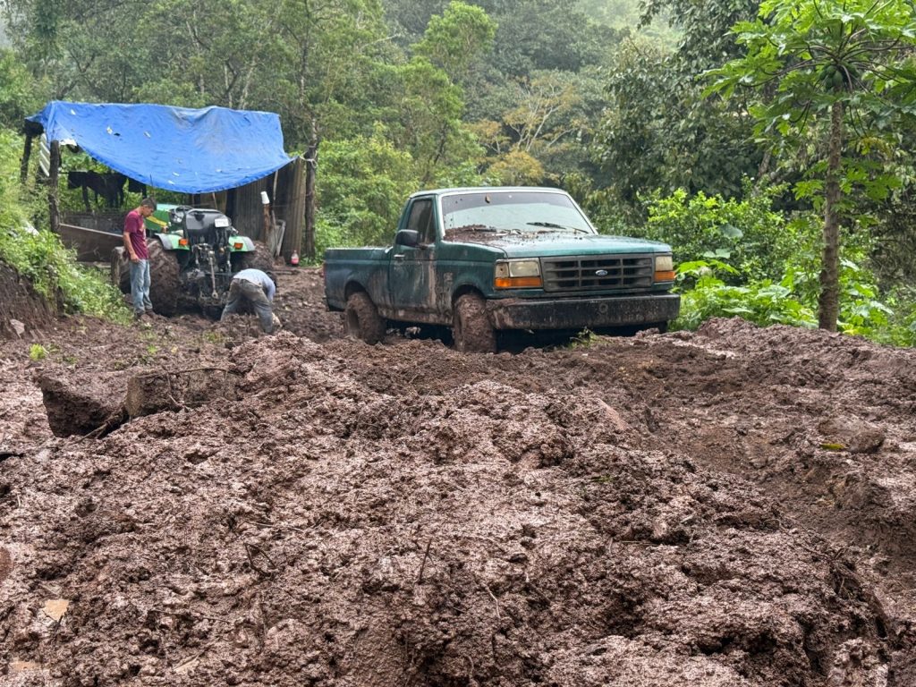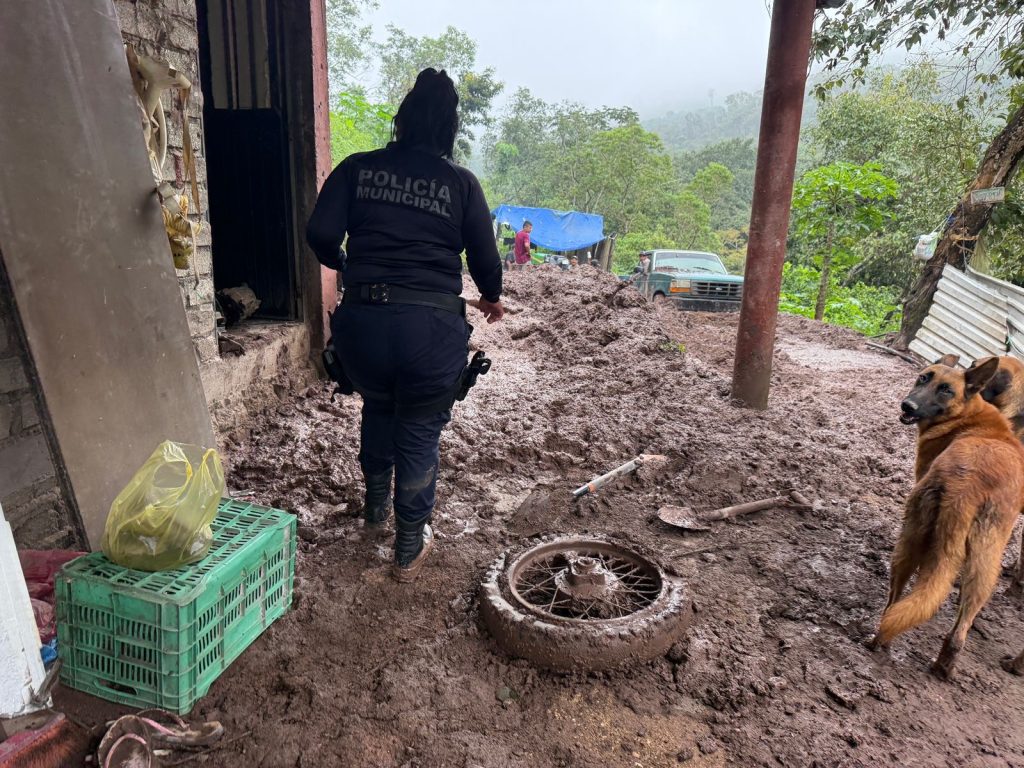 Tepic.- Por instrucción de la presidenta municipal Geraldine Ponce, personal de Protección Civil y Policía Municipal de Tepic atiende el derrumbe de un cerro ocurrido en una vivienda de la comunidad Lo de García.