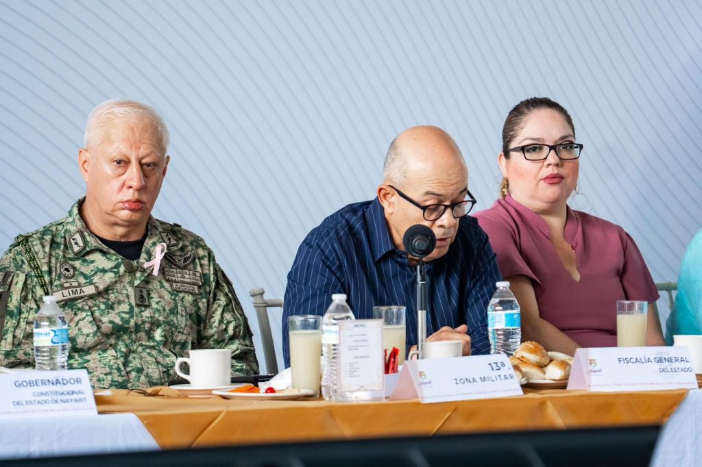 Este jueves, el gobernador del estado de Nayarit, Miguel Ángel Navarro Quintero sostuvo una reunión con representantes del Ejército, de la Marina, de la Guardia Nacional, de la Fiscalía, de los Poderes del Estado y de los gobiernos municipales, con el propósito de reforzar la coordinación y fortalecer la estrategia de seguridad.