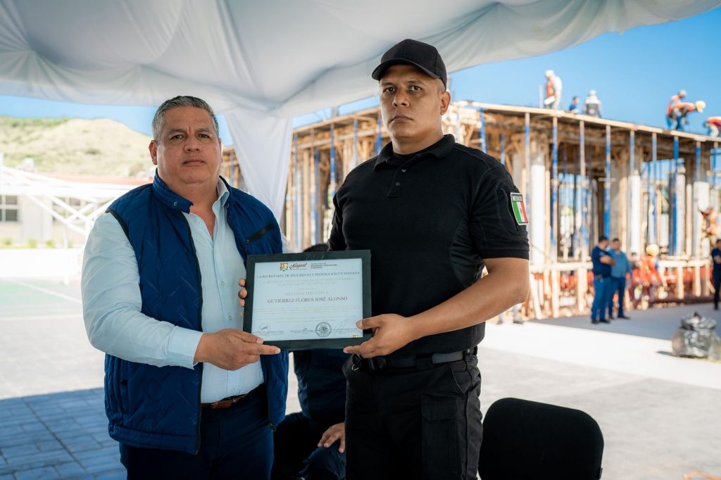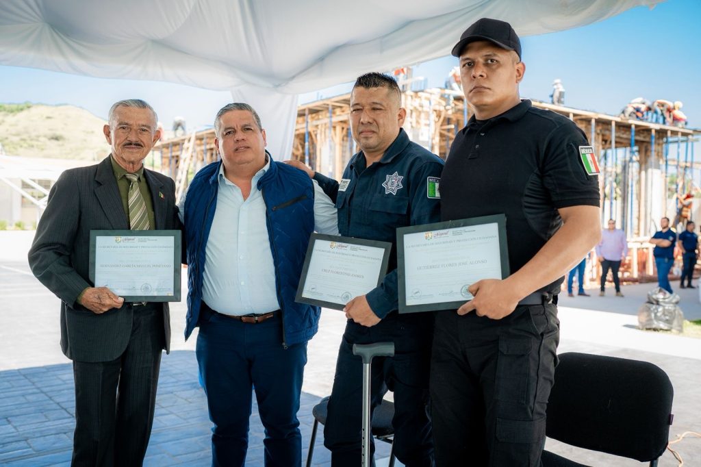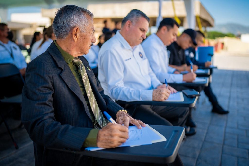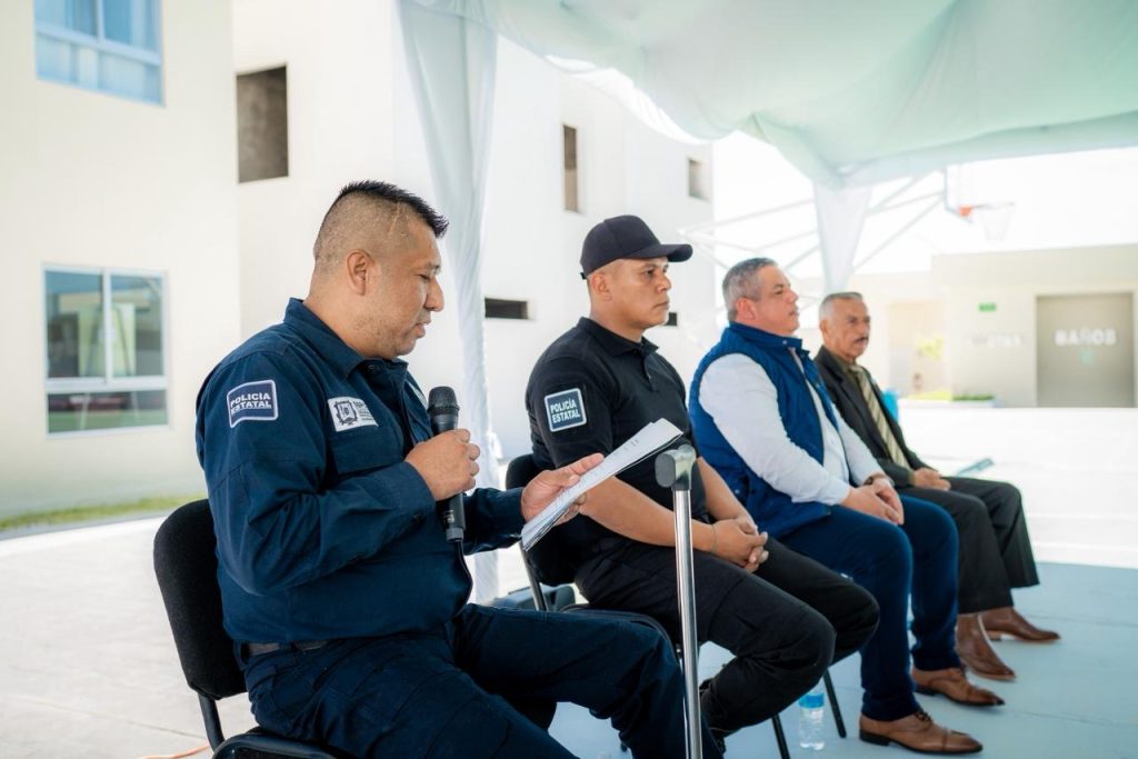 La mesa de honor fue encabezada por el Secretario de Seguridad y Protección Ciudadana, Dr. en Derecho Manases Langarica Verdín, acompañado por el Mayor Manuel Ponciano Hernández García y los agentes de la Policía Estatal Andrés Cruz Florentino y José Alonso Gutiérrez Flores, quienes participaron activamente en el desarrollo del evento.