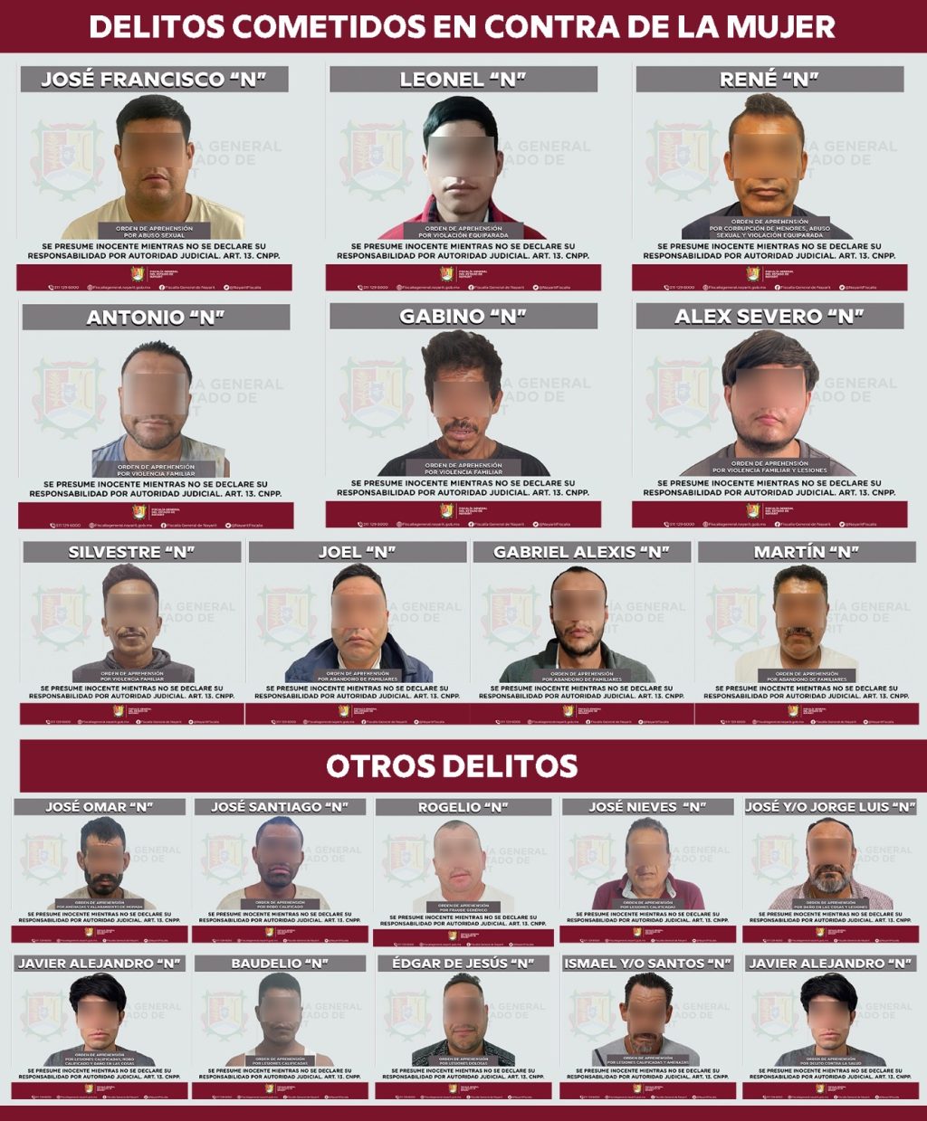 De este total, 11 órdenes de aprehensión corresponden a delitos cometidos en agravio de mujeres, niñas y adolescentes, como resultado del trabajo permanente que se realiza para prevenir, investigar y sancionar la violencia de género. Con estas acciones, el acumulado asciende a 750 órdenes de aprehensión ejecutadas por delitos de violencia de género desde el pasado 25 de noviembre.