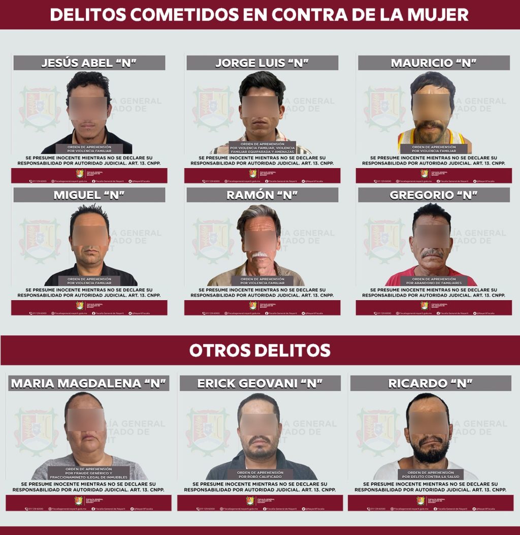 Tepic, Nayarit. – En ejercicio de sus atribuciones constitucionales y como parte de la estrategia permanente para el combate a la impunidad, la Fiscalía General del Estado de Nayarit ejecutó el 9 de enero un total de 12 órdenes de aprehensión por diversos delitos, en distintos municipios de la entidad.