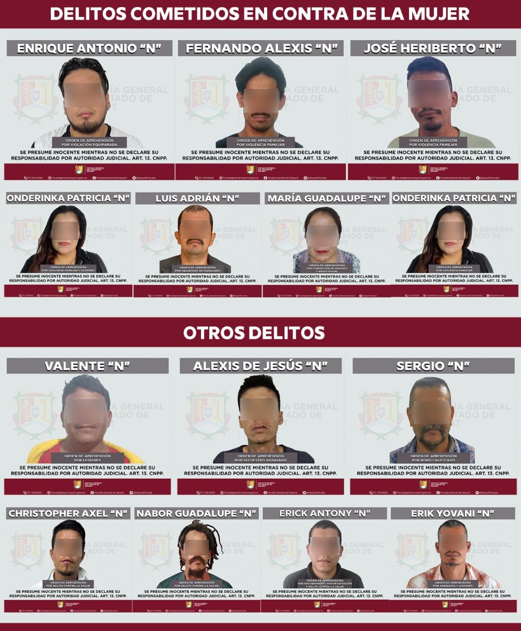 Tepic, Nayarit. – En el marco de las acciones permanentes para fortalecer la seguridad y combatir la delincuencia en la entidad, la Fiscalía General del Estado de Nayarit informó que el pasado 6 de febrero se ejecutaron 16 órdenes de aprehensión por diversos delitos.