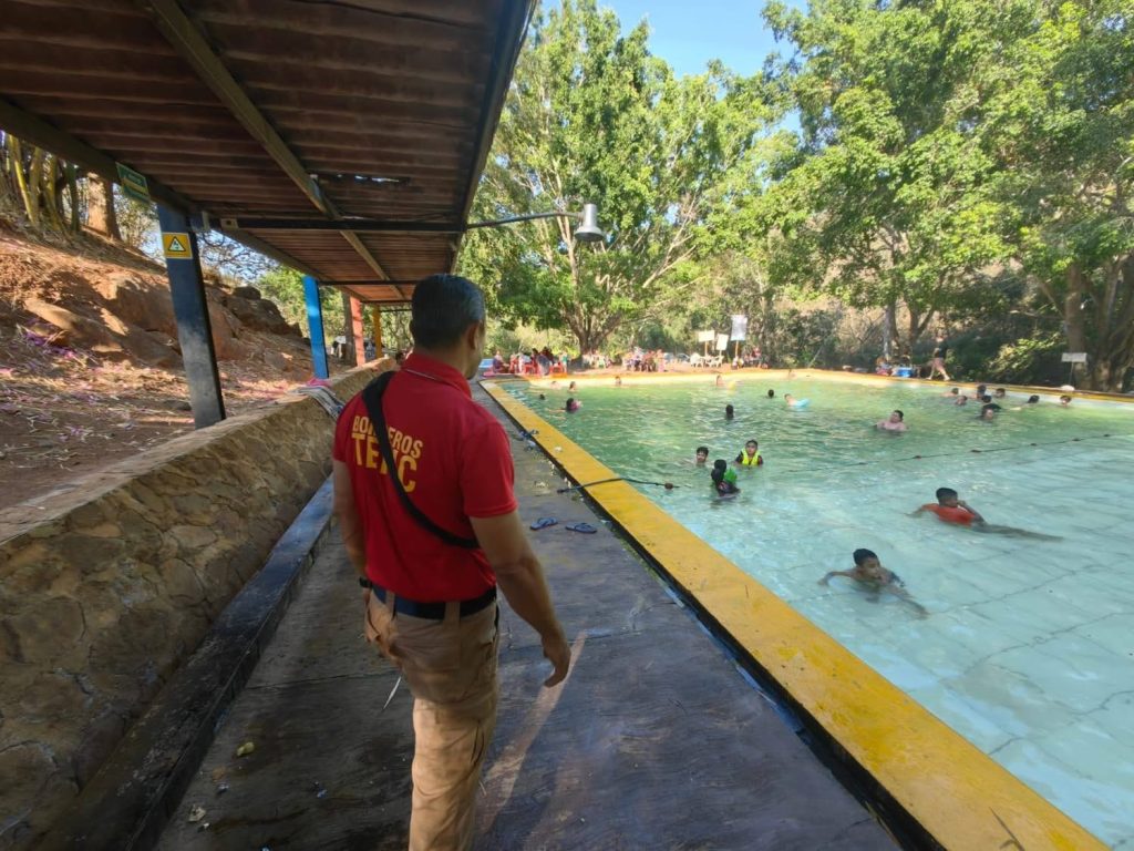 Tepic, Nayarit.– Con el objetivo de salvaguardar la integridad de las y los vacacionistas, elementos de Protección Civil y Bomberos de Tepic intensificaron las labores de prevención en balnearios y diversos sitios recreativos durante el periodo de Semana Santa 2026.