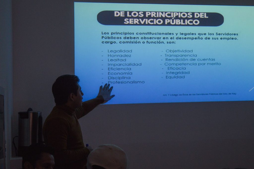Durante la jornada se desarrollaron temas enfocados en los principios rectores del servicio público, la responsabilidad administrativa, la prevención de conflictos de interés y la promoción de buenas prácticas que impulsen un entorno laboral basado en el respeto, la legalidad y la transparencia.