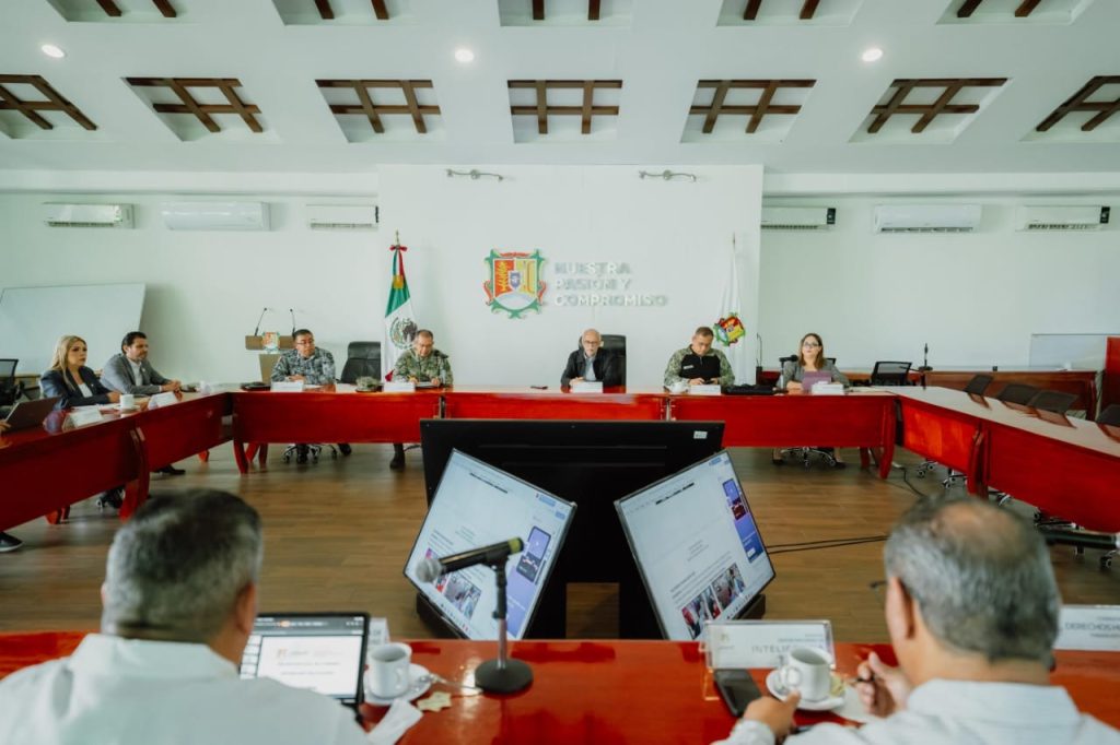 Indicó que, junto a autoridades de los tres órdenes de gobierno, se evalúan los operativos en marcha, así como las labores de prevención y el despliegue contra máquinas tragamonedas, con el aseguramiento de equipos vinculados a actividades ilícitas.