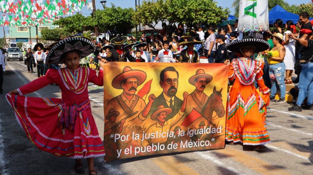 Rosamorada conmemora el 115 Aniversario de la Revolución Mexicana con desfile cívico encabezado por el alcalde Ampelio Gutiérrez