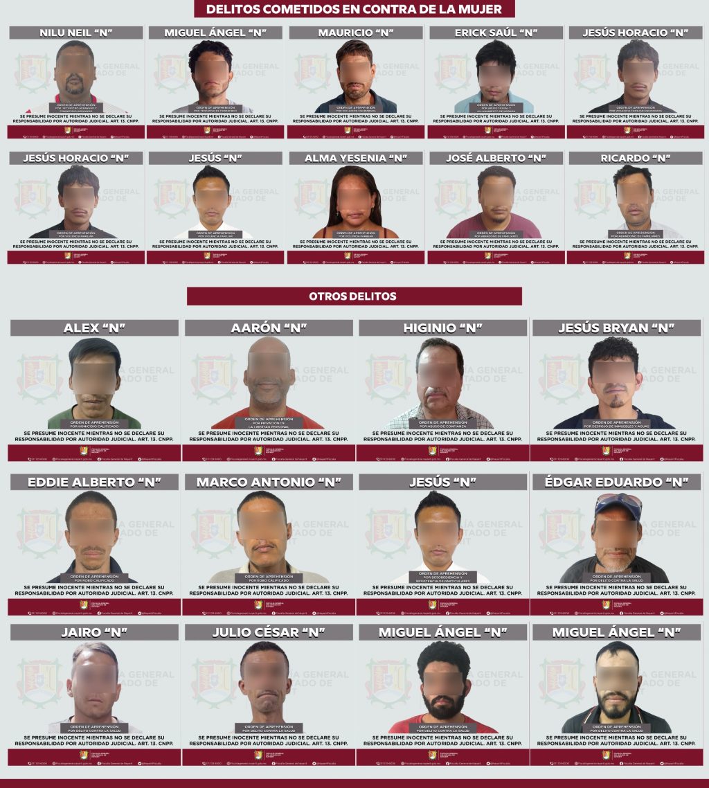 Tepic, Nayarit; 17 de abril de 2026. – La Fiscalía General del Estado de Nayarit informó que del 14 al 16 de abril fueron ejecutadas 32 órdenes de aprehensión por diversos delitos en distintos municipios de la entidad.