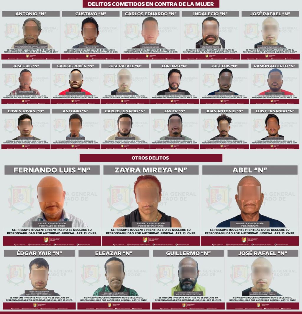 Tepic, Nayarit; 11 de abril de 2026. – La Fiscalía General del Estado de Nayarit informa que los días 9 y 10 de abril fueron ejecutadas 30 órdenes de aprehensión por diversos delitos, en distintos municipios de la entidad.
