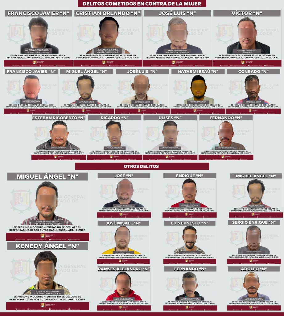 SE EJECUTAN 26 ÓRDENES DE APREHENSIÓN; INCLUYEN CASOS DE FRAUDE Y HOMICIDIO CALIFICADO