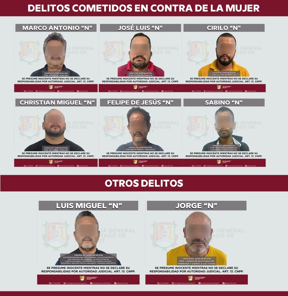 Al continuar las acciones para combatir la violencia de género y fortalecer el acceso a la justicia, la Fiscalía General del Estado de Nayarit ejecutó los días 27 y 28 de diciembre un total de 9 órdenes de aprehensión por diversos delitos, en distintos municipios de la entidad.
