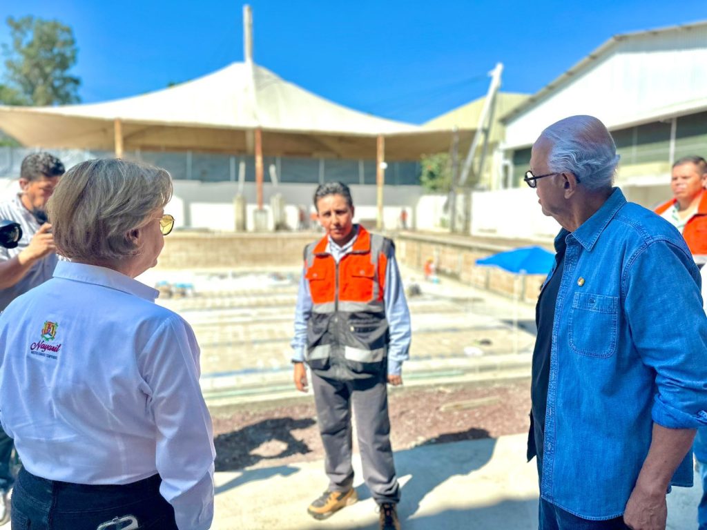 Como primer punto de su gira de trabajo de este sábado, el gobernador de Nayarit, Miguel Ángel Navarro Quintero, supervisó los avances en la rehabilitación de la alberca olímpica del Parque La Loma, que registra un 75% de progreso. La obra incluye equipamiento con especificaciones CONADE, instalaciones hidrosanitarias y eléctricas renovadas, nueva iluminación, rehabilitación de gradas y cubierta, así como mejoras en sanitarios, regaderas y el cuarto de máquinas.
