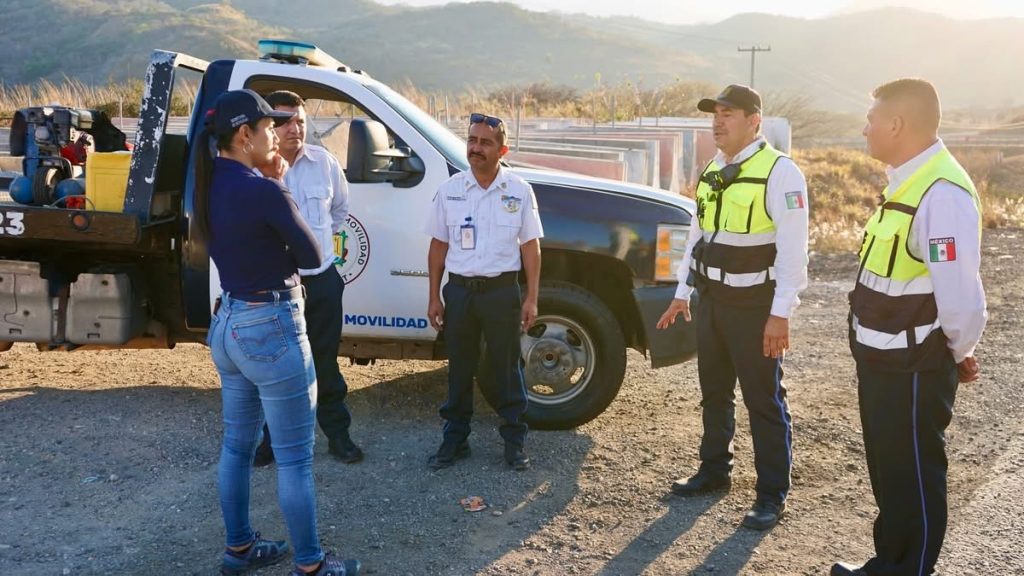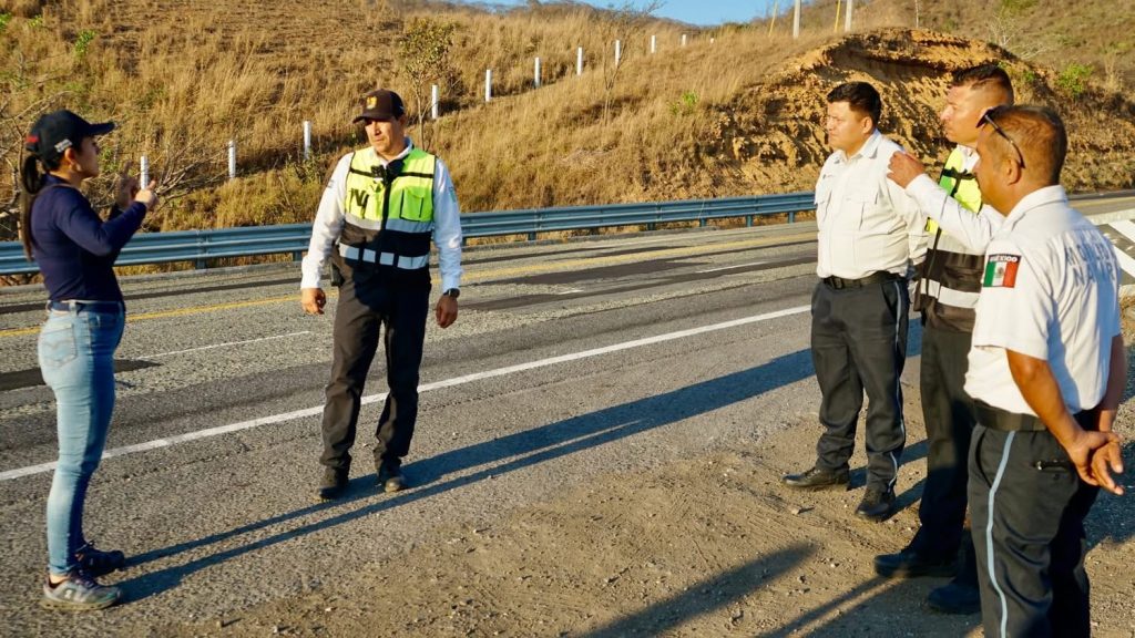 La secretaria de Movilidad, Sistiel Karime Buhaya Lora, supervisó los módulos de apoyo vial instalados en el municipio de Compostela, ubicados en la autopista 200D (km 41+500) y en la carretera federal 200, en su cruce con la 68D.