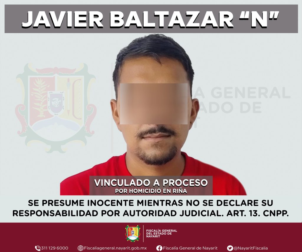 Tepic, Nayarit; 16 de octubre de 2025. – La Fiscalía General del estado de Nayarit informa que un Juez de Control dictó auto de vinculación a proceso contra Javier Baltazar “N”, por su probable responsabilidad penal en hechos que la ley califica como homicidio en riña, cometido en agravio de una persona de sexo masculino cuya identidad se mantiene bajo reserva.