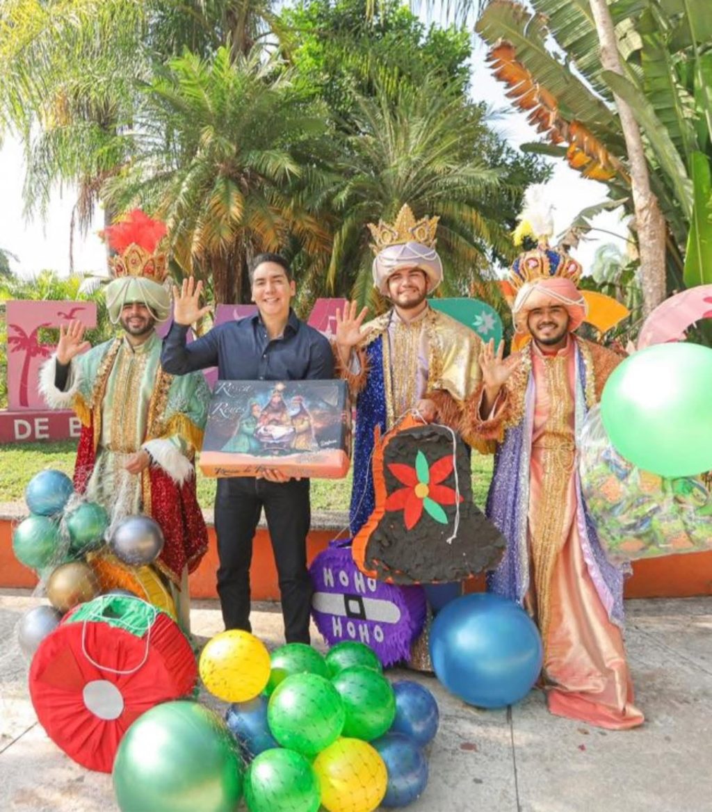 Bahía de Banderas, Nayarit.— Con un ambiente de alegría, ilusión y cercanía con la ciudadanía, el presidente municipal de Bahía de Banderas, Héctor Santana, encabezó los festejos por la llegada de los Reyes Magos, una celebración pensada especialmente para las niñas y niños del municipio.